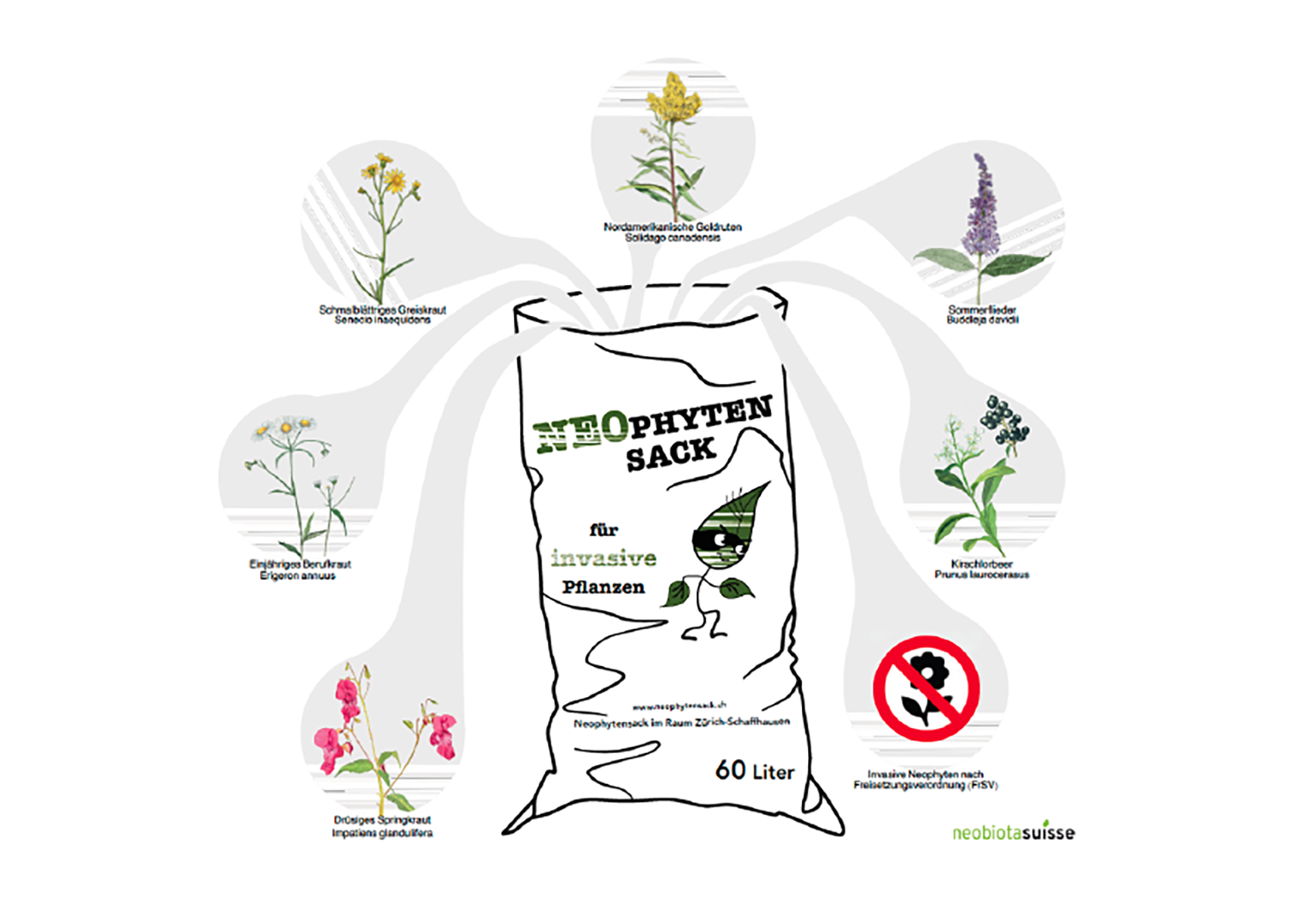 Der Neophytensack ist die sichere Lösung zur Entsorgung invasiver Pflanzenabfälle. Er wird von den Gemeinden gratis abgegeben – so können auch Private Samen, Triebe und Wurzeln von Neophyten korrekt entsorgen und verhindern, dass gefährliche Pflanzenreste über Grüngut oder Kompost zurück in die Natur gelangen.