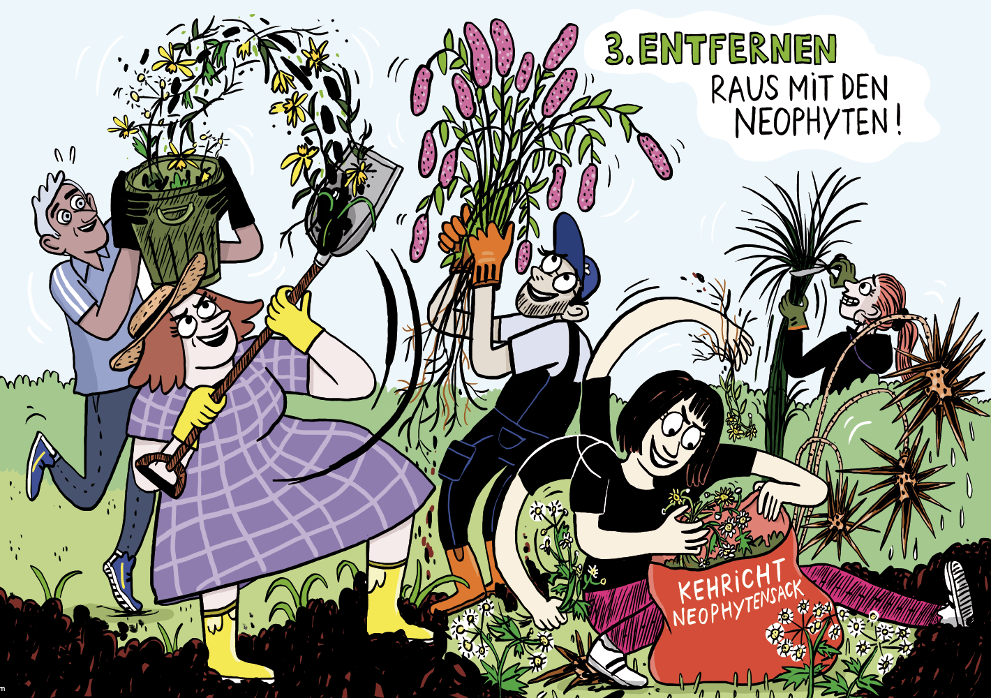 - Handeln Sie frühzeitig: Entfernen Sie invasive Neophyten vor der Blüte, um die Samenbildung zu verhindern.