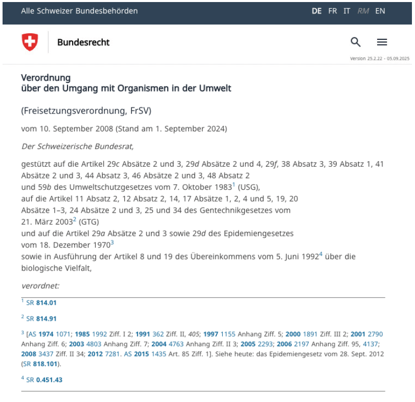 (Freisetzungsverordnung, FrSV) vom 10. September 2008 (Stand am 1. September 2024)