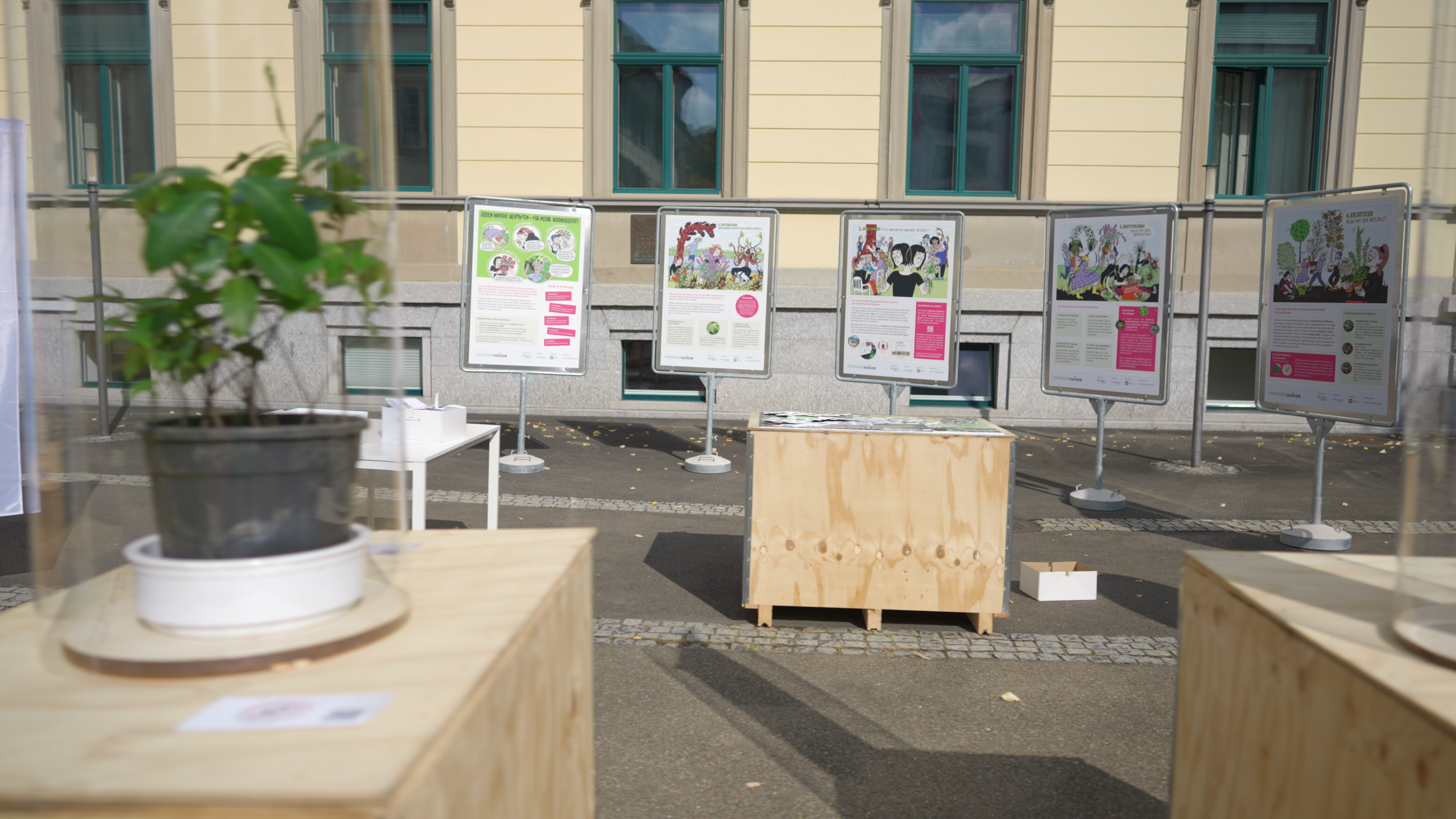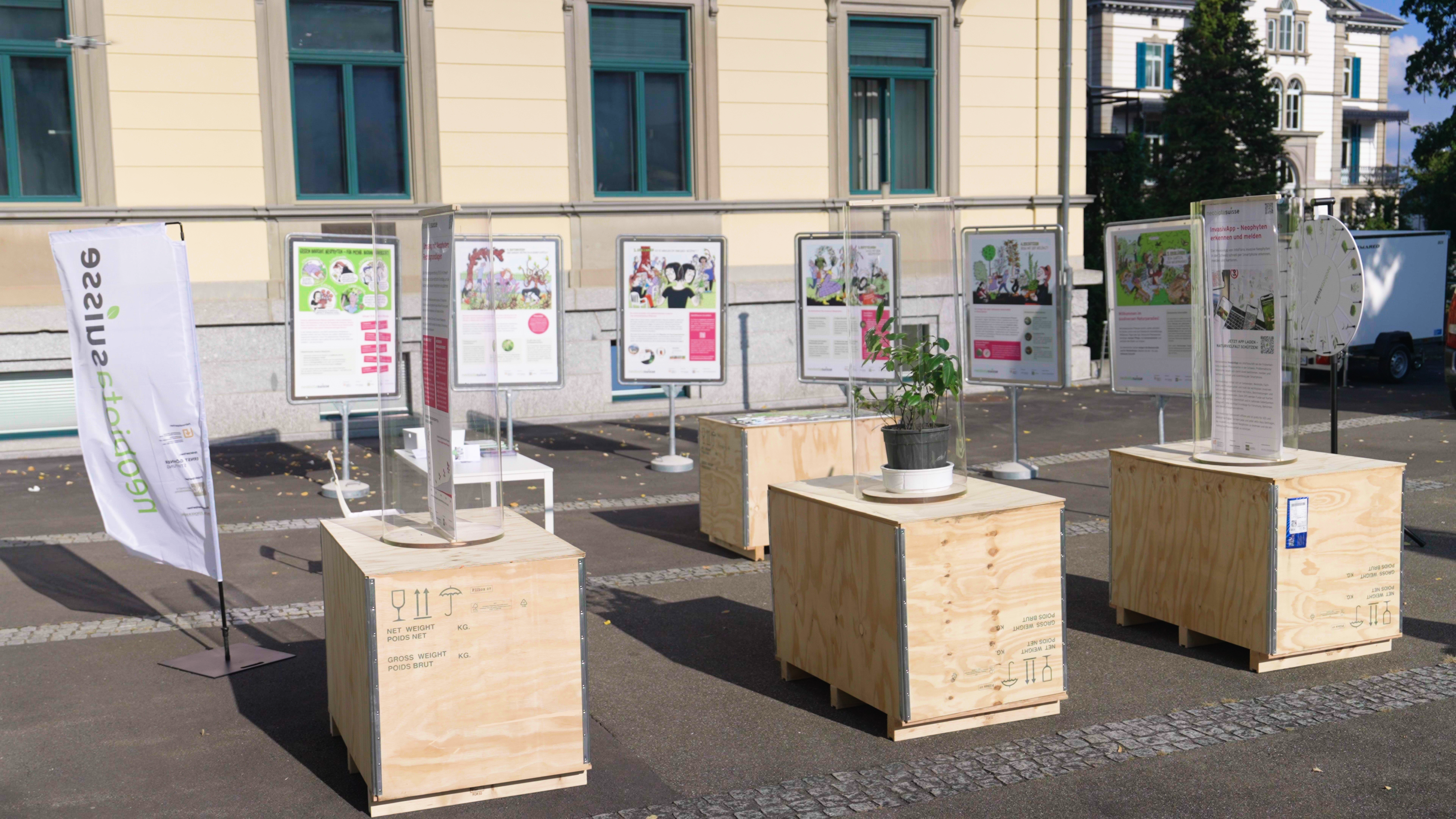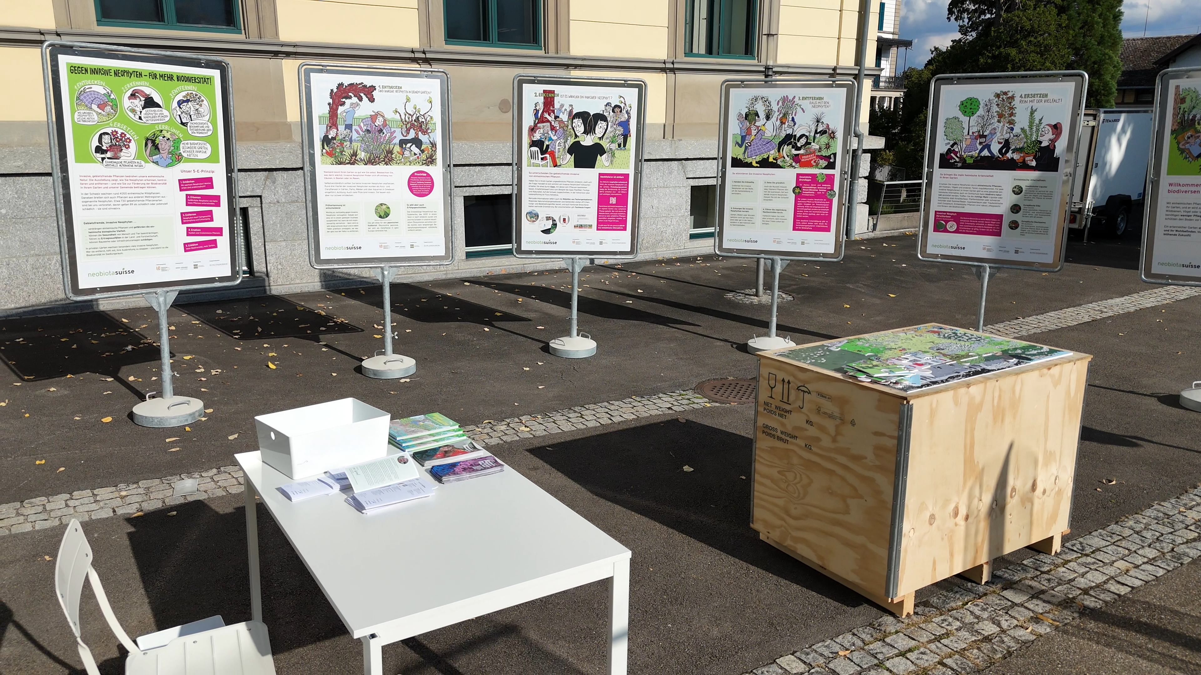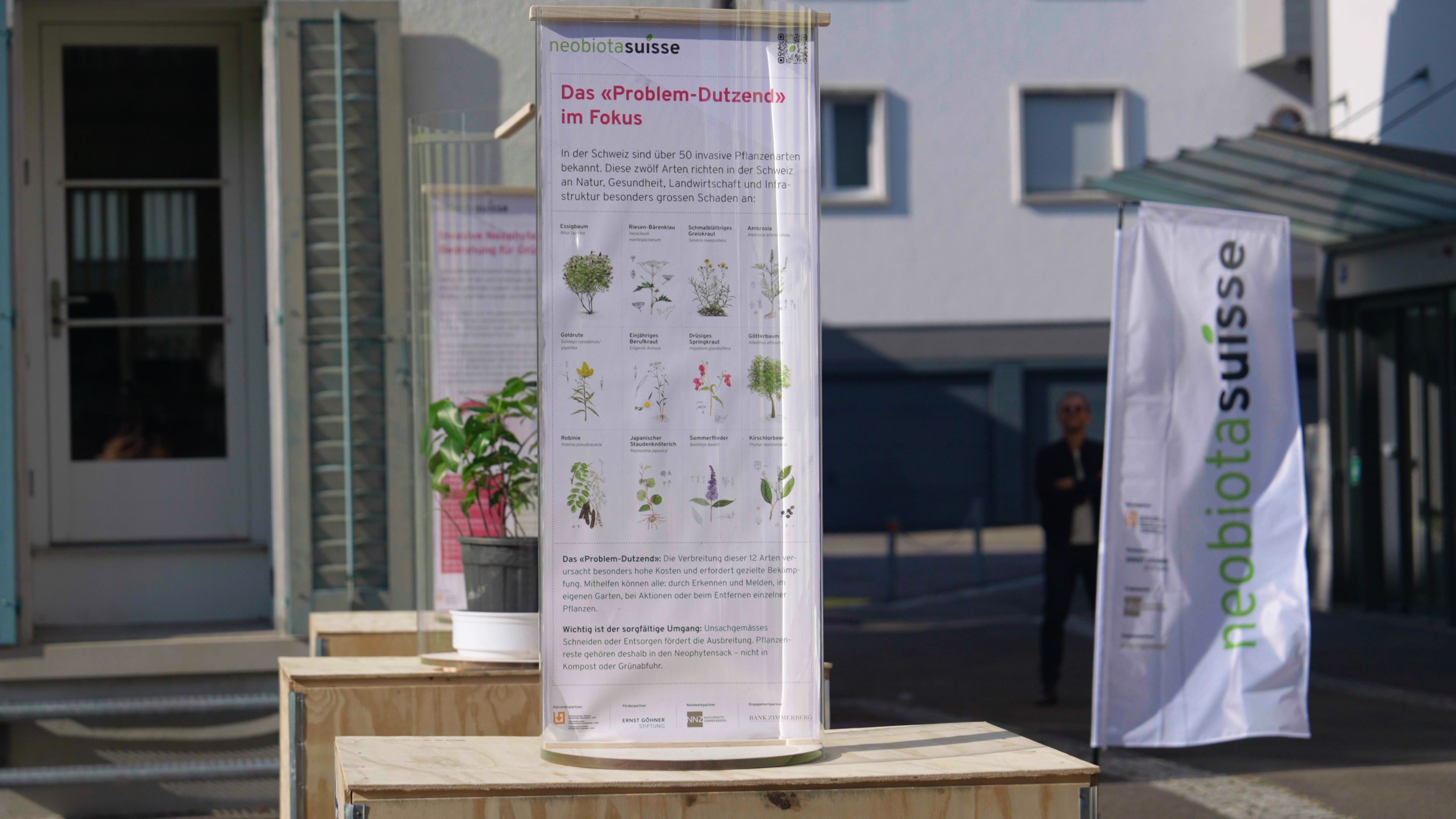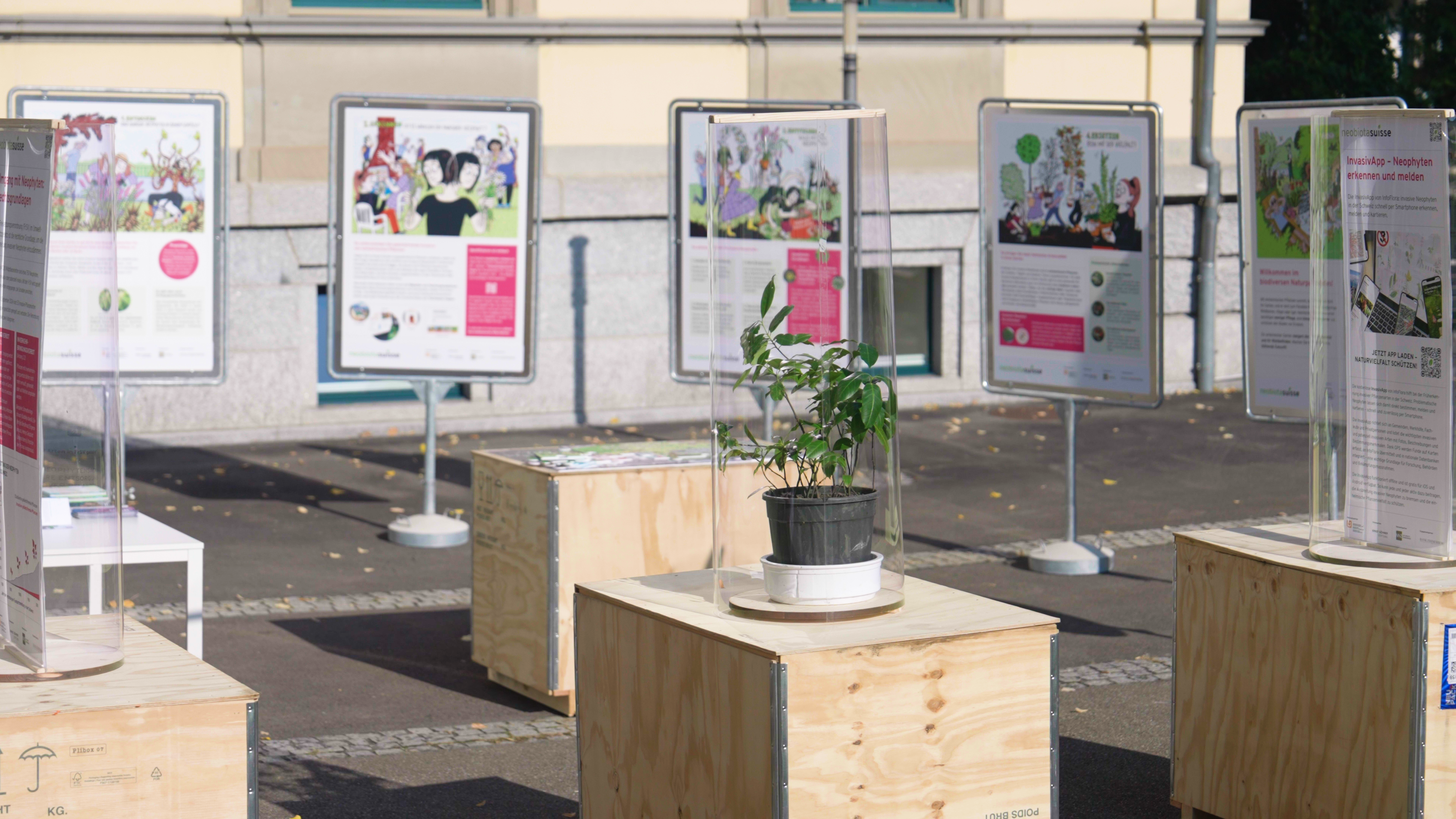 Die mobile Ausstellung bietet eine anschauliche und praxisnahe Einführung in den Umgang mit invasiven, gebietsfremden Pflanzenarten im Siedlungsraum und Landwirtschaftsgebieten.