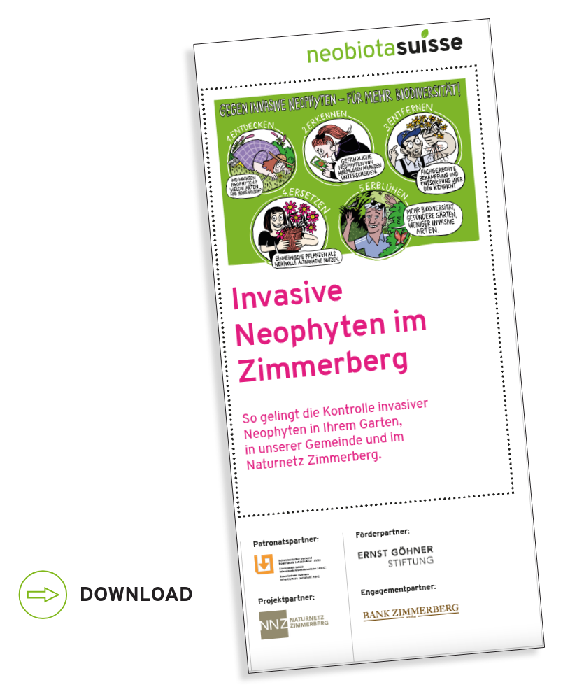 Jede und jeder von uns kann einen Beitrag leisten – doch nur gemeinsam gelingt es, die Ausbreitung zu bremsen. Packen wir es an – für eine lebendige, artenreiche Zukunft im Naturnetz Zimmerberg!